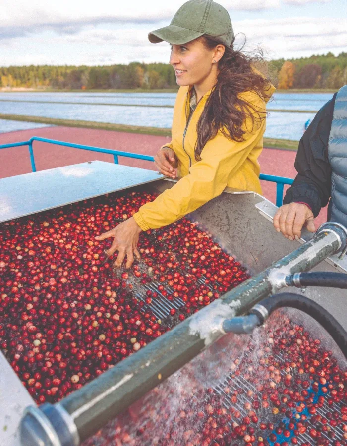 Les canneberges fraîches, celles que vous achetez dans l'allée des fruits et légumes chaque automne, sont récoltées de deux façons. Elles sont soit cueillies à sec, soit récoltées en tourbière inondée au moyen d'outils spécialisés en forme de peigne qui délogent délicatement les baies des vignes. On les sèche ensuite pour assurer la plus haute qualité possible.