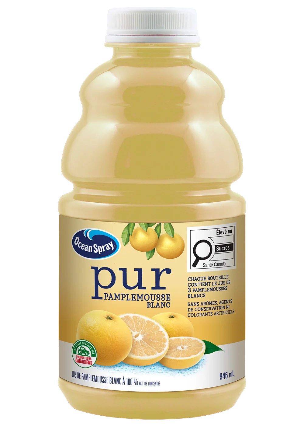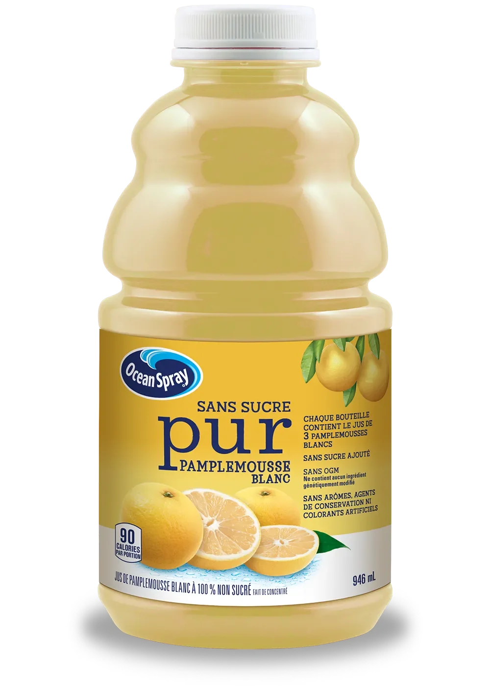 Offrez-vous une explosion de bienfaits éclatants et piquants avec le jus pur Pamplemousse blanc d'Ocean Spray®. Il ne contient ni arômes artificiels ni agents de conservation – juste la boisson acidulée aux agrumes dont vous avez envie. Chaque bouteille est fabriquée à partir du jus de plus de 3 pamplemousses blancs, offrant ainsi un équilibre parfait entre goût audacieux et saveur d'agrumes. Que ce soit pour préparer un cocktail, ajouter une touche d'agrumes à vos smoothies ou en faire des sucettes glacées pour vous régaler de superaliments, ce jus saura vous procurer une fraîcheur délicieuse!