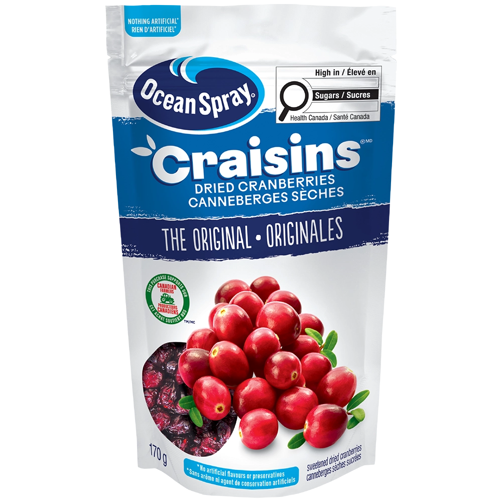 Surprise your taste buds with the delicious taste of Craisins® Dried Cranberries that are great for snacking, salads, baking, or as an addition to any favourite recipe. Made with real cranberries they’re gluten free, fat free and a good source of fiber.